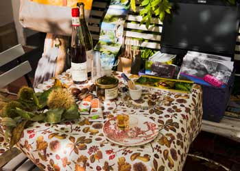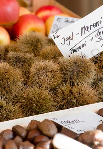 …an diesem Wochenende im Oktober 2013 konnte man leckere Rezepte aus einem der größten Anbaugebiete für Eßkastanien, die Ardèche, erfahren, allerlei Kastanienprodukte kosten und ein Kochbuch erwerben.