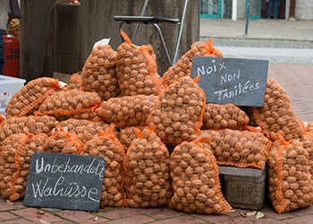 Auf dem kleinen Kirchplatz bot Ihnen Christophe kostbare Walnüsse-, Lavendel- und Safranprodukte aus der Provence an.